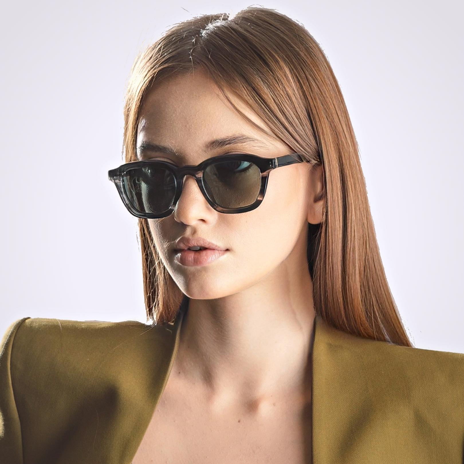 Inspired by the legendary Ennio Morricone. Here we’re combining the classic with a cinematic twist: think old Hollywood with a modern spin. The choice of colors here allows you to go for daytime lenses that resemble classic spectacles, or a darker look to serve as shades.
