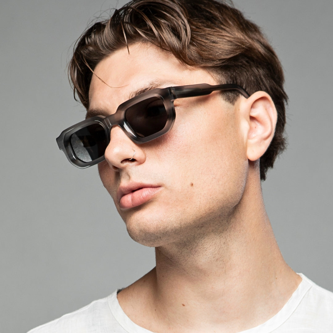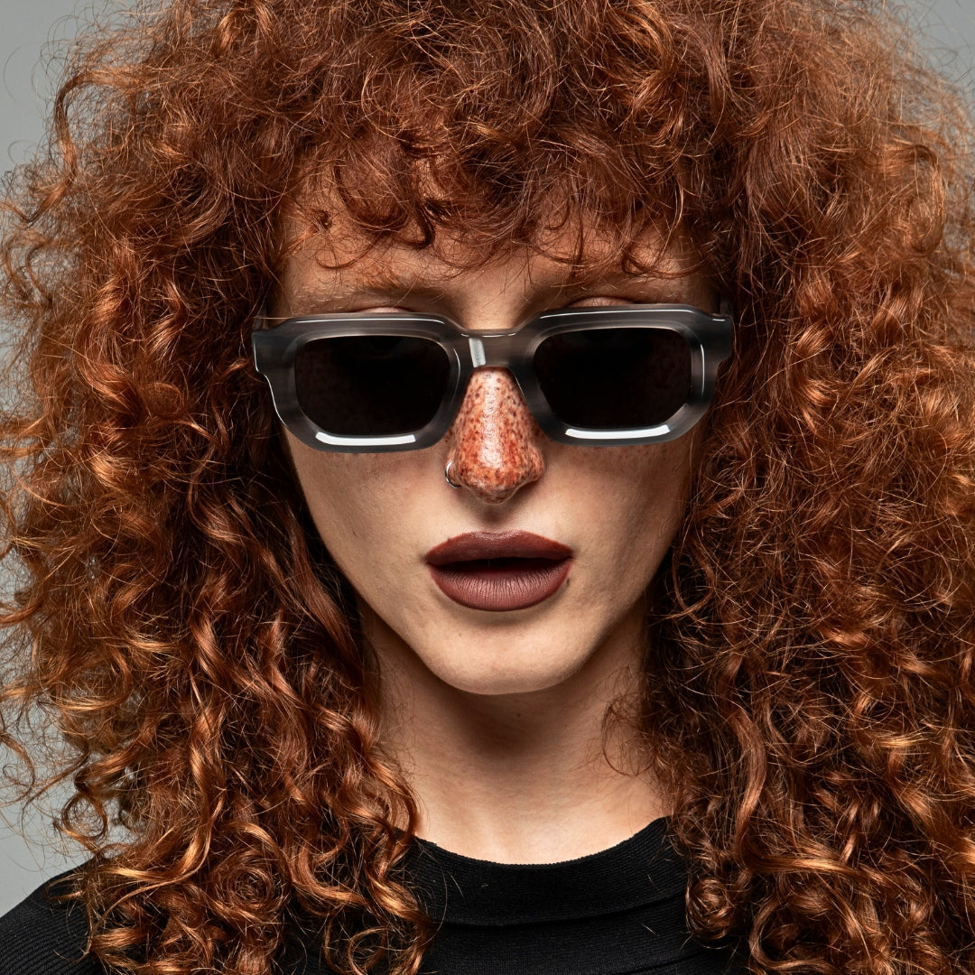 Their bold, geometric frame in thick acetate creates a powerful, futuristic presence,