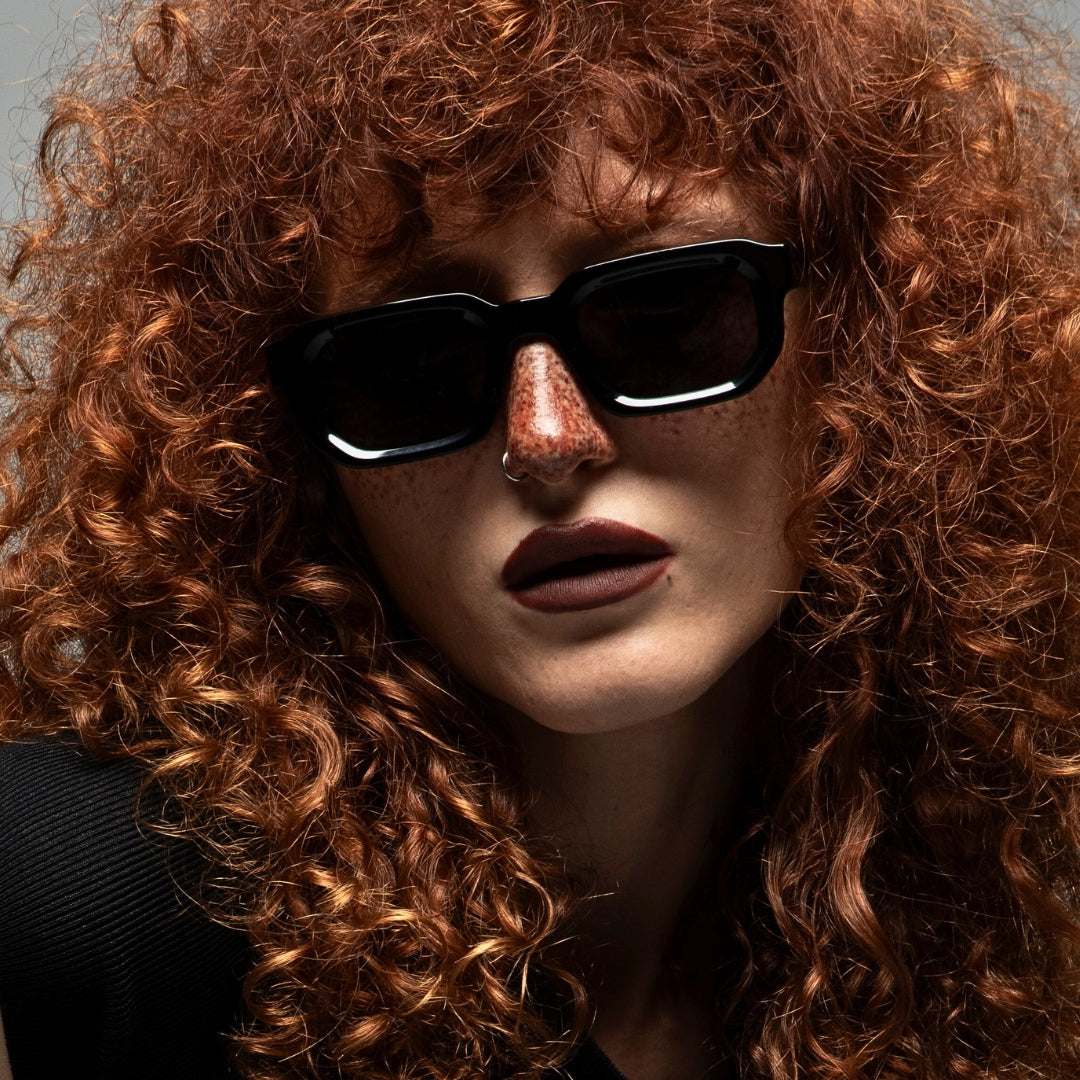 Their bold, geometric frame in thick acetate creates a powerful, futuristic presence,
